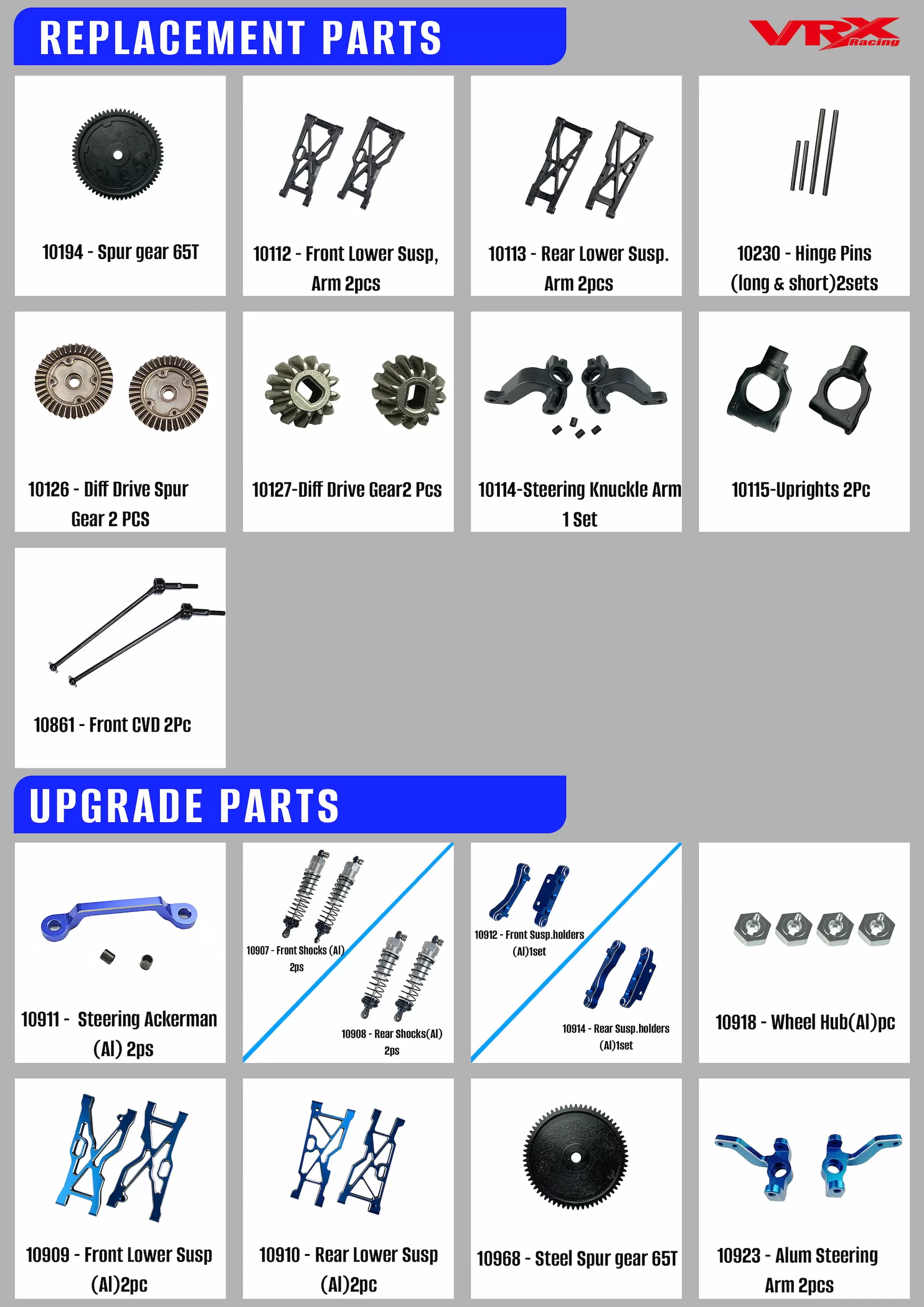 Come nuovo membro della famiglia VRX, siamo pieni di attesa per il Merak. Viene fornito con sistema avanzato 4WD, movimentazione flessibile. L'aspetto squisito è dotato di un nuovo corpo, design di pneumatici testurizzati trasparenti, impugnatura forte, adatto a vari terreni. Il nuovo paraurti ha una forte forza di lucidatura e può essere dotato di luci a LED per offrire una bella esperienza visiva. I supporti del braccio Susp anteriore/posteriore in allum proteggono bene le prestazioni dell'auto. Ovunque ci sia Merak, ci sono dei ricordi.