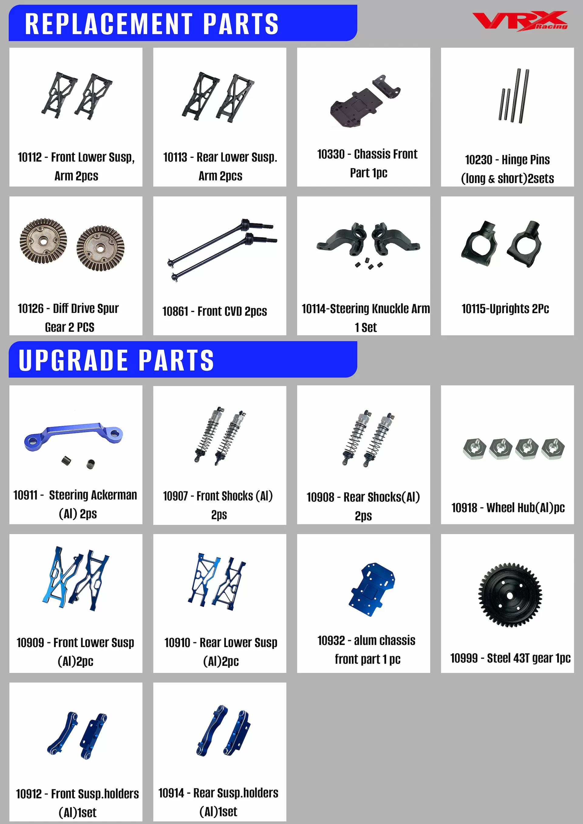 Sospensione completamente regolabile tra cui, droop, camber, toe-in, interasse ecc., sintonizzazione della sospensione, i giocatori possono migliorare le prestazioni della loro auto in base alle condizioni della pista e alle esigenze di guida, tuning della sospensione per adattarsi a varie superfici (e.g,Piste lisce, fuoristrada). Assorbe efficacemente gli urti durante i salti o i terreni accidentati, protegge il telaio e l'elettronica. Ottimizza il contatto del pneumatico con il terreno per una migliore presa e trazione.