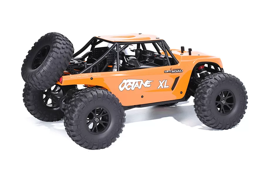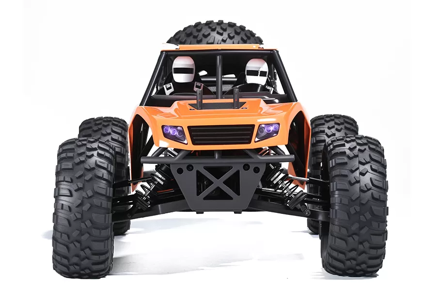 Ammortizzatori riempiti d'olio con viaggi estesi assorbono urti e dune, mantenendo il contatto dei pneumatici su superfici irregolari. Gli angoli della Camber e della punta regolabili personalizzano la geometria della sospensione per una stabilità e una trazione ottimizzate in sabbia sciolta.